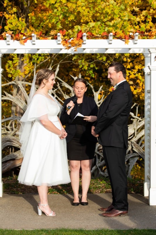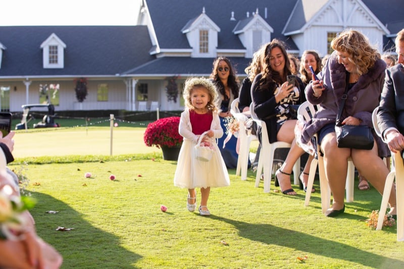 The ceremony, held outdoors at the golf club, was a breathtaking display of nature's beauty. The vibrant fall colours and leaves created an almost mystical atmosphere, making every shot a piece of art in itself. Laura and Chad's vows were as heartfelt as the setting, and their love shone as brightly as the sun filtering through the trees.