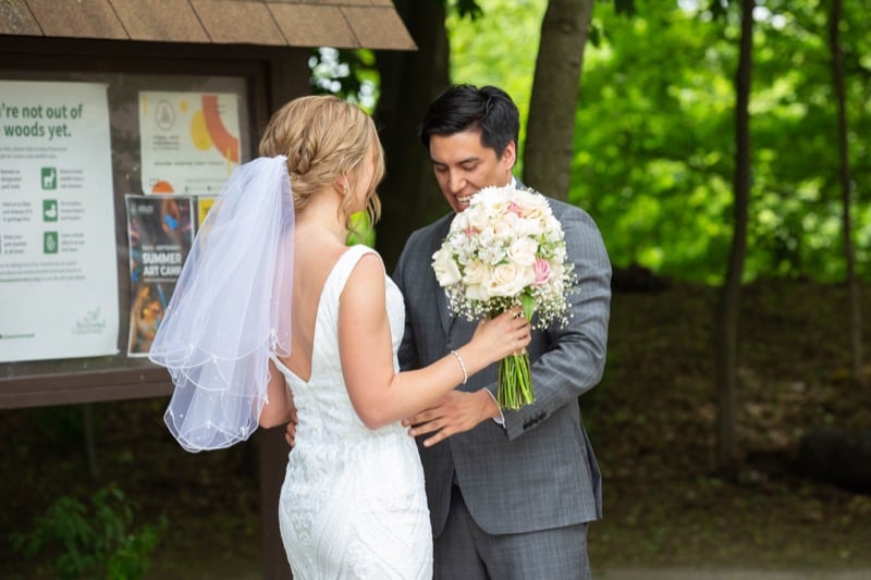Nestled at 7555 Falconer Dr, Mississauga, ON L5N 0C3, MacEwan Terrace Garden is a hidden gem perfect for wedding photography. This venue offers lush, manicured landscapes and a serene ambiance, making it an ideal backdrop for capturing those first look photos and intimate couple portraits. Despite the heat of a typical June day, the garden's shaded areas provided some respite, allowing us to create magical moments without the discomfort typically associated with sunny days. Its accessibility and ample space make it a top choice not only for weddings but for any special event requiring a touch of nature's elegance.